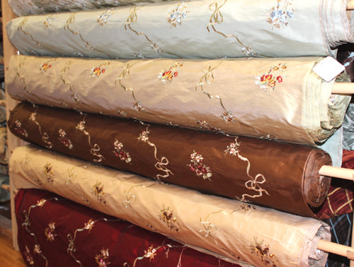 Ribbon Bouquet Collection - Embroidered Silk Dupioni - Chocolate - 3.5 Yard Remnant