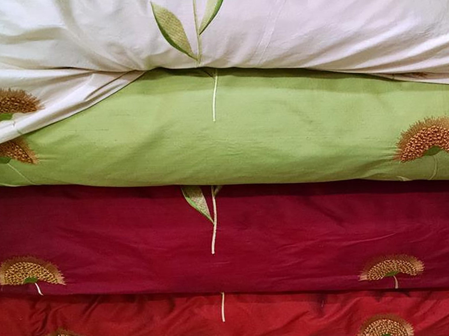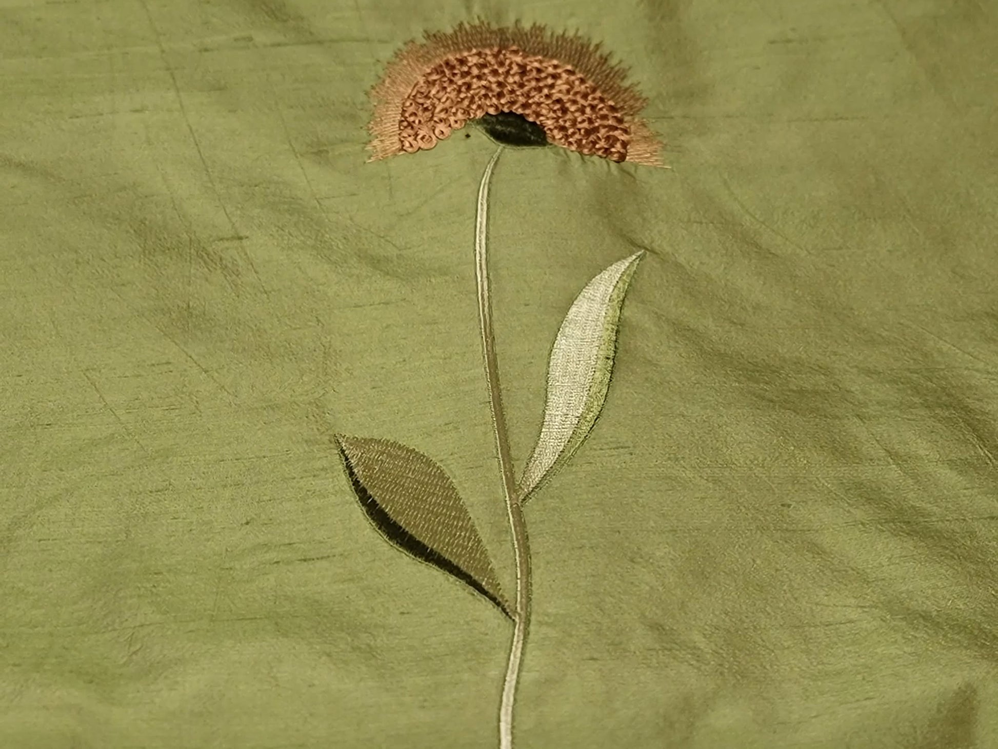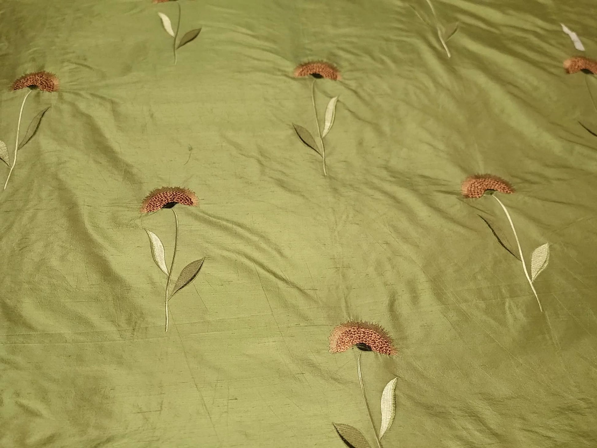 Embroidered sunflowers on Silk Dupioni